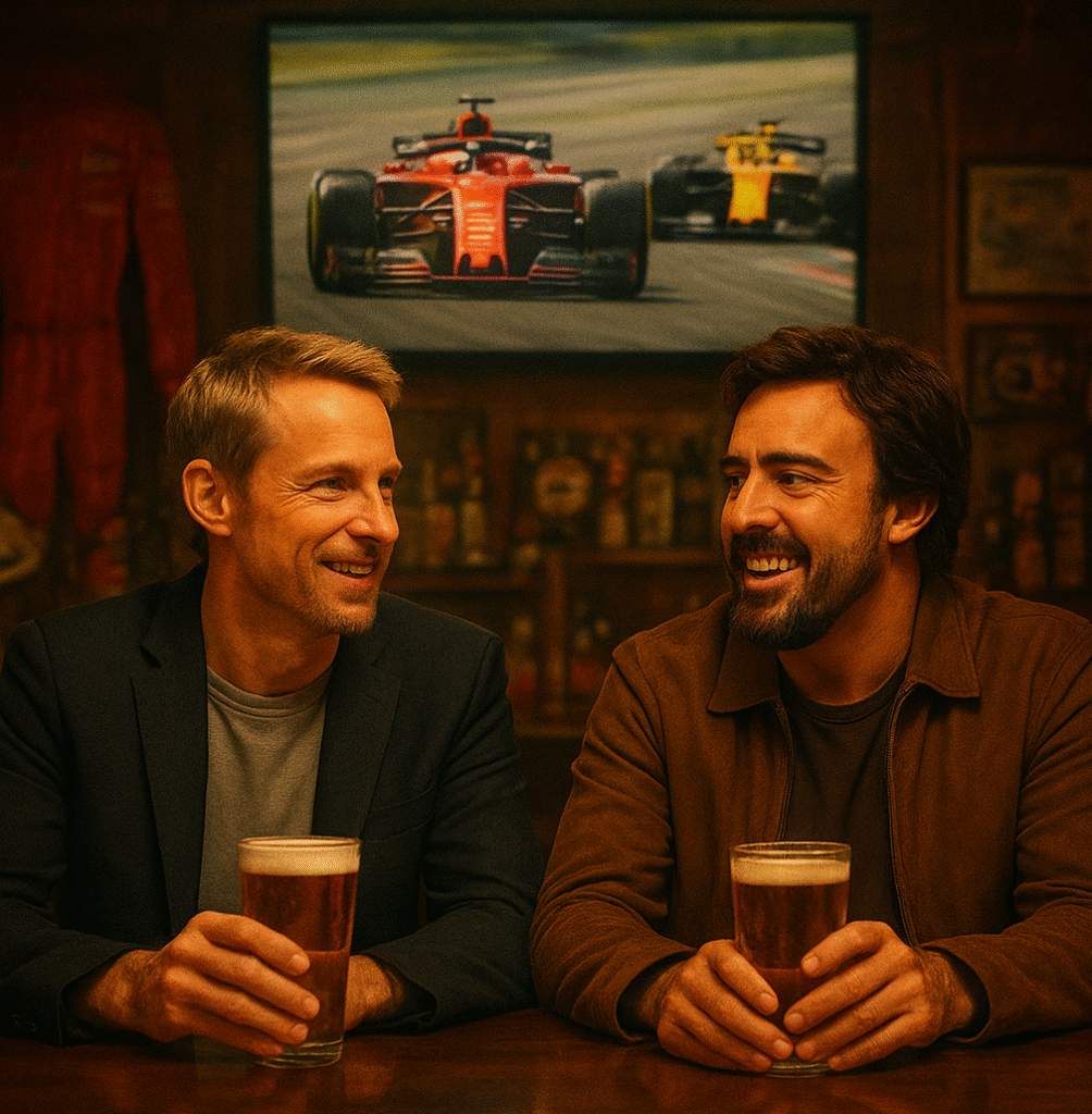 “- Có gì mà bác ngạc nhiên vậy, Alonso. Chẳng phải mỗi khi Practice 3 xong là chúng ta lại ngồi đây để Stephen lựa bia cho uống sao? Này Stephen, sao không cho hắn loại bia Anh ngon nhất đi, dẹp cái Galicia này dùm tôi, trông chán òm.”